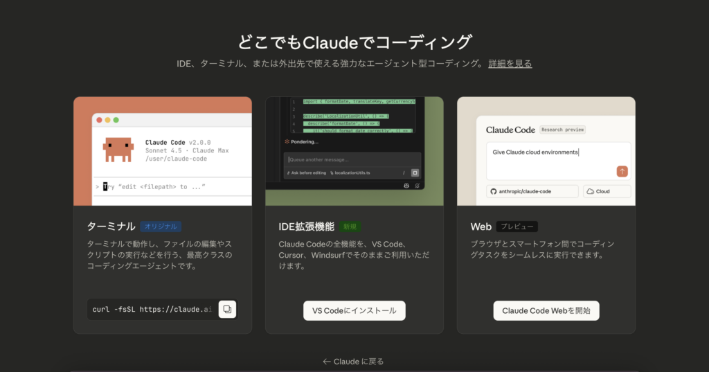 Claude Codeを利用する方法は、大きく3つに分かれる。