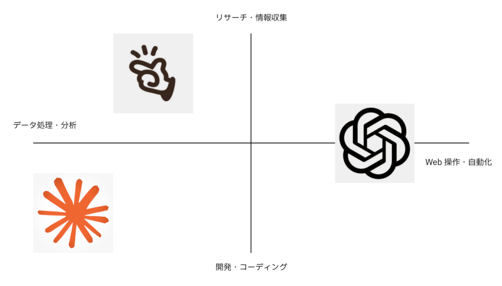 ただ、正直なところ「結局どれを使えばいいの?」という声も多いのではないでしょうか。リサーチ、データ整理、コーディング、Webの自動操作——どのエージェントが何に強いのか、実際に使ってみないと分からない。